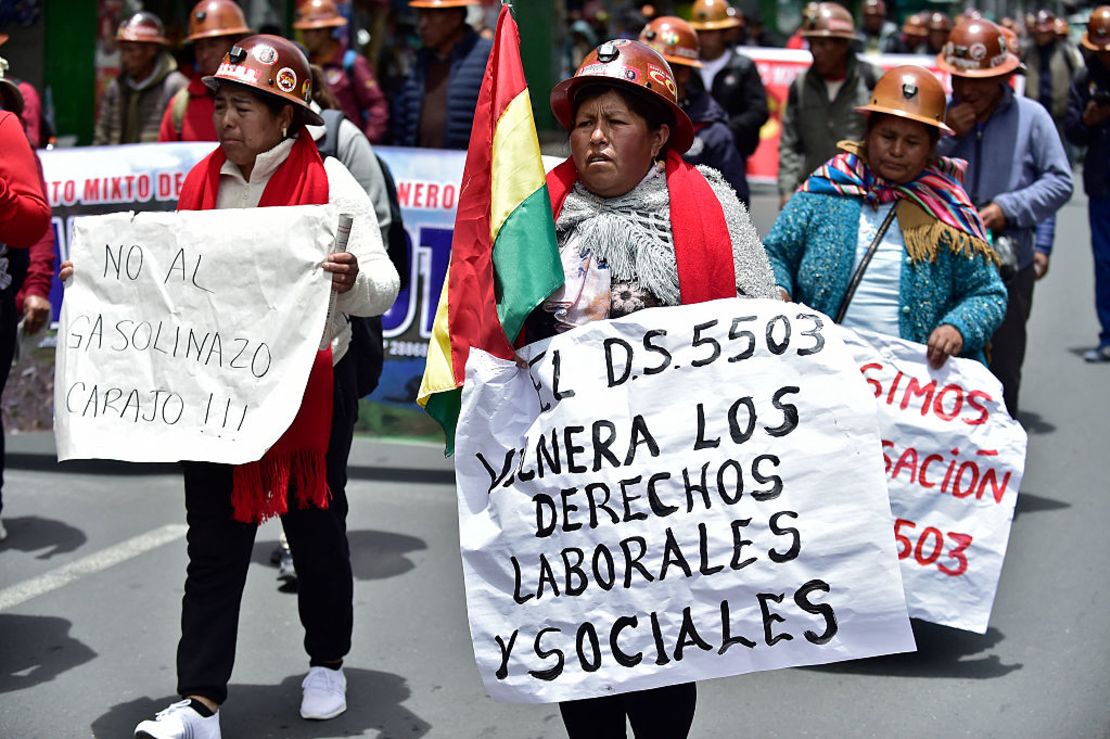 «Esta marcha se ha convocado para derogar este decreto que atenta los derechos de todos los bolivianos. (Si no se retira) vamos a continuar con medidas, tiene que haber una convocatoria sana y estructural para sentarnos a dialogar», dijo el presidente de la Federación Nacional de Cooperativas Mineras, Josué Richard Kari Kari.