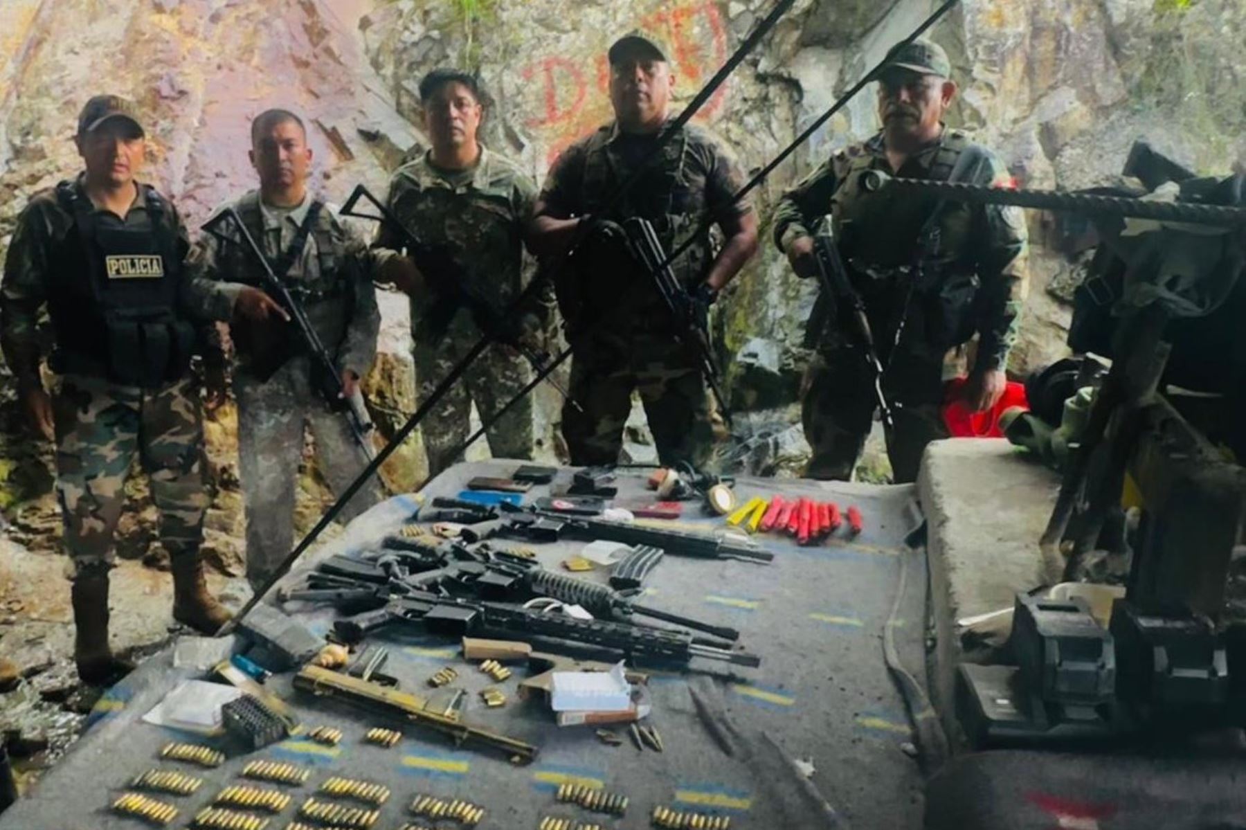 También más de 370 municiones de diversos calibres, incluyendo 5.56 mm y .45 mm.,18 cacerinas, algunas abastecidas, 125 emulsiones explosivas tipo hidrogel, así como 190 detonantes Cardex, usualmente empleados para voladuras en minería ilegal, informa Perú 21.