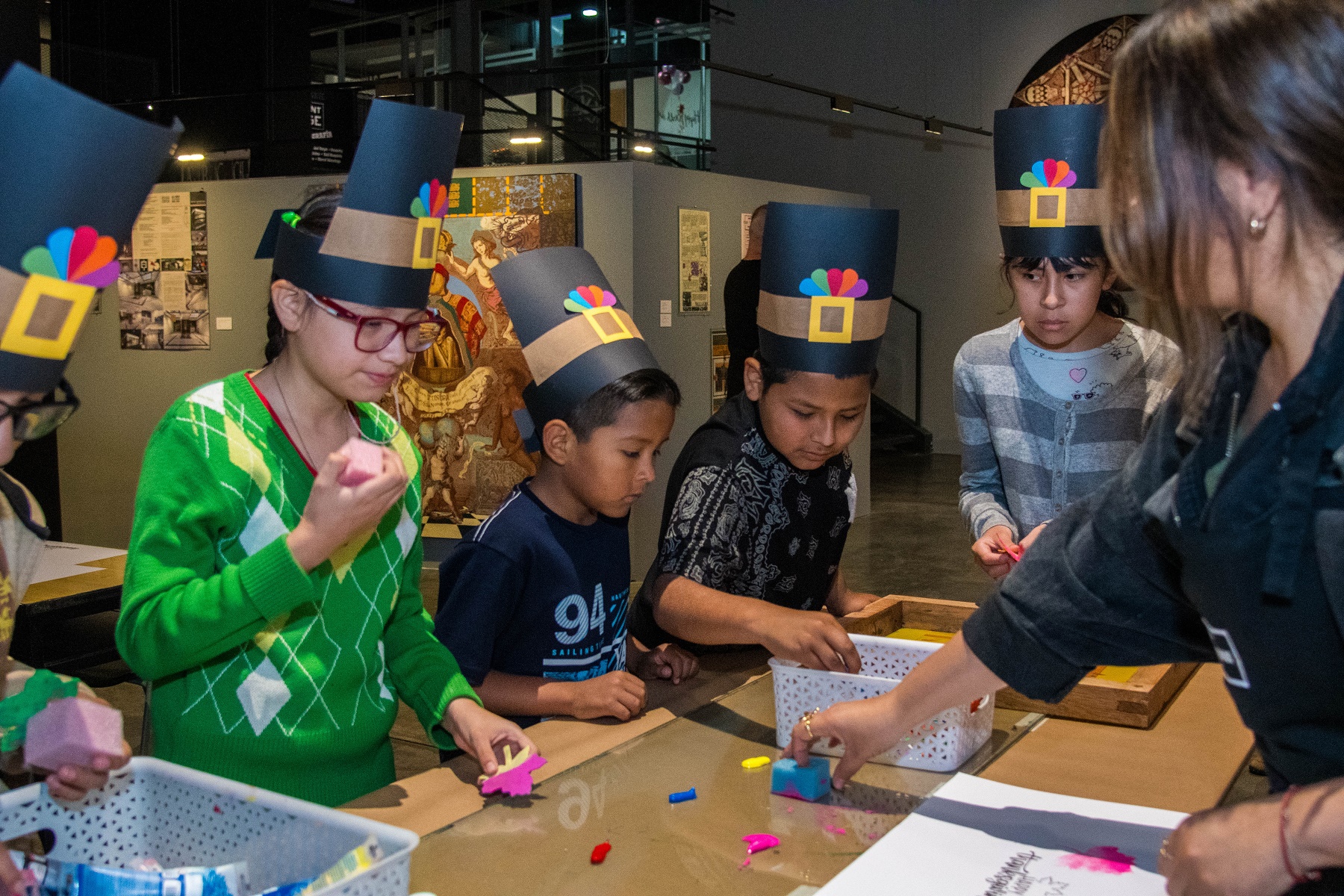 Durante el taller de serigrafía, los niños trabajaron con materiales especializados y pintaron cartulinas preimpresas con un diseño alusivo al Día de Acción de Gracias. Esta dinámica les permitió conocer de manera práctica el proceso del grabado, así como explorar habilidades creativas y de expresión personal.