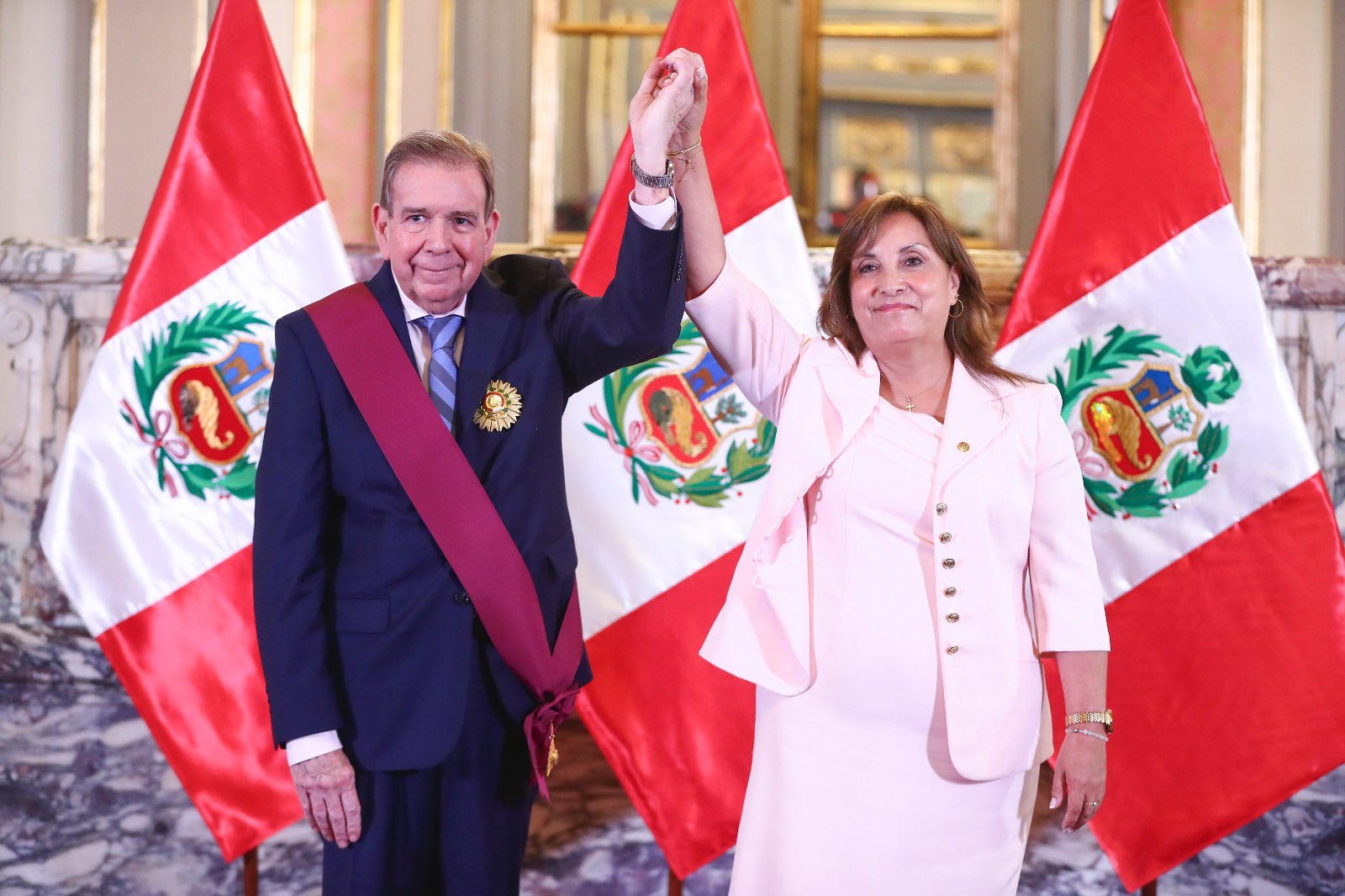 Durante la ceremonia de condecoración de González Urrutia con la Orden “El Sol del Perú”, en el Grado de Gran Cruz, la más alta distinción que otorga el Estado peruano, la mandataria resaltó el liderazgo y valentía del presidente electo por una Venezuela libre y democrática.